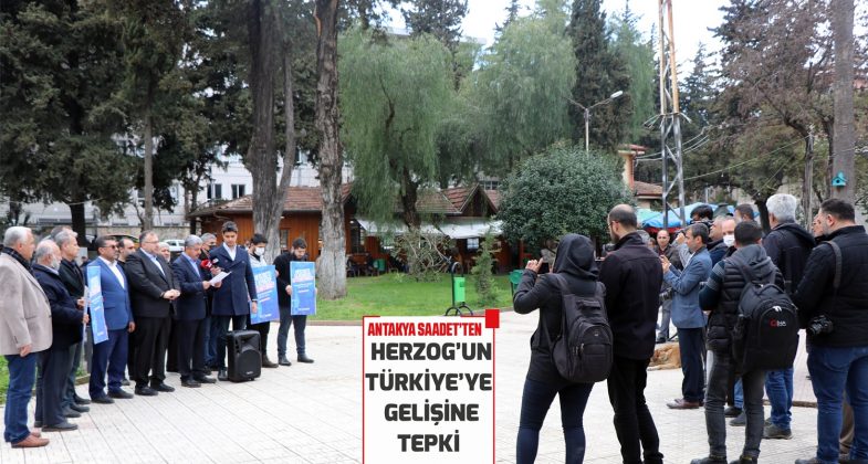 Saadet Partisi Hatay İl Başkanlığı Antakya Vali Ürgen alanında İsrail Cumhurbaşkanı Herzog’un Türkiye ziyaretini protesto etti.