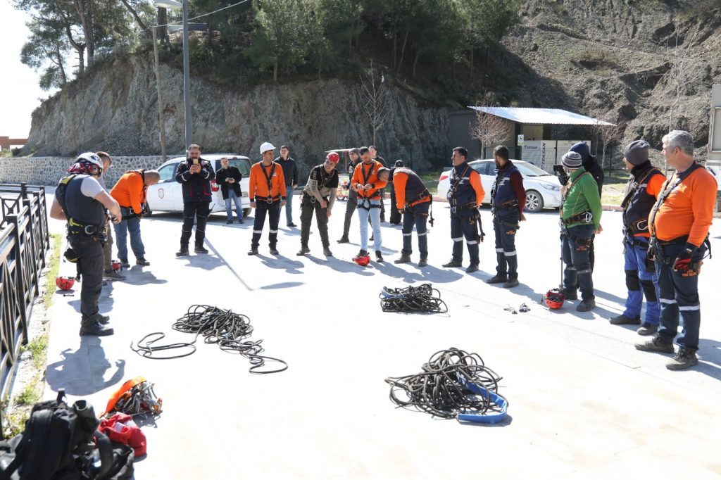 Hatay Büyükşehir Belediyesinin verdiği bu eğitimin amacı, çalışanlarının hayati tehlikesi olan yüksek alanlarda arama kurtarma ve temizleme çalışmalarını en güvenli şekilde yapabilmelerini sağlamak.