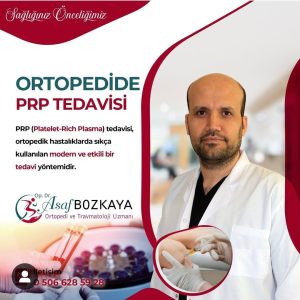 Ortopedi ve Travmatoloji Uzmanı Op.Dr.Asaf Bozkaya PRP (Platelet-Rich Plasma) tedavisi hakkında yaptığı açıklamasında:” PRP (Platelet-Rich Plasma) tedavisi, ortopedik hastalıklarda sıkça kullanılan modern ve etkili bir tedavi yöntemidir. Bu tedavi hasar görmüş dokuların iyileşme sürecini hızlandırmak ve yenilenmesini teşvik etmek amacıyla uygulanır.